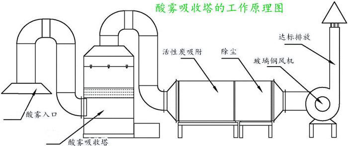 1、廢氣經(jīng)由排氣管道進(jìn)入酸霧吸收塔內(nèi)部;